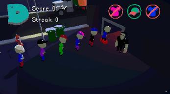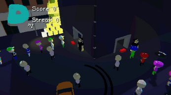 DressCode is a little funky rhythm game where you play as the doorman of a club. The line will move along at the rythm of the music, but not every customer will follow the party's dress code! Your mission is to kick those rebel people out of the line before they enter the club!